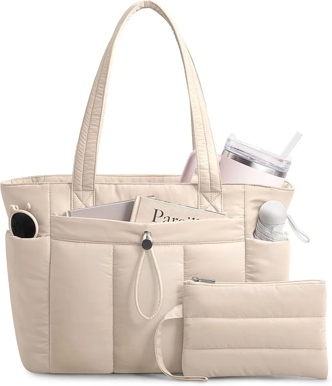 A puffer handbag is a great first item to include in your office bag setup because it is both stylish and practical. Made from ultra-light polyester memory fabric, this bag feels soft and lightweight while still being strong enough for everyday use. It features a smart organisational design with multiple pockets, including a padded sleeve that fits a 15-inch laptop, spaces for your phone and keys, and even a holder for a large tumbler. With its modern quilted look and pastel colour options, the puffer handbag combines fashion with function, making it perfect for work, travel, or daily errands while keeping all your essentials organised.